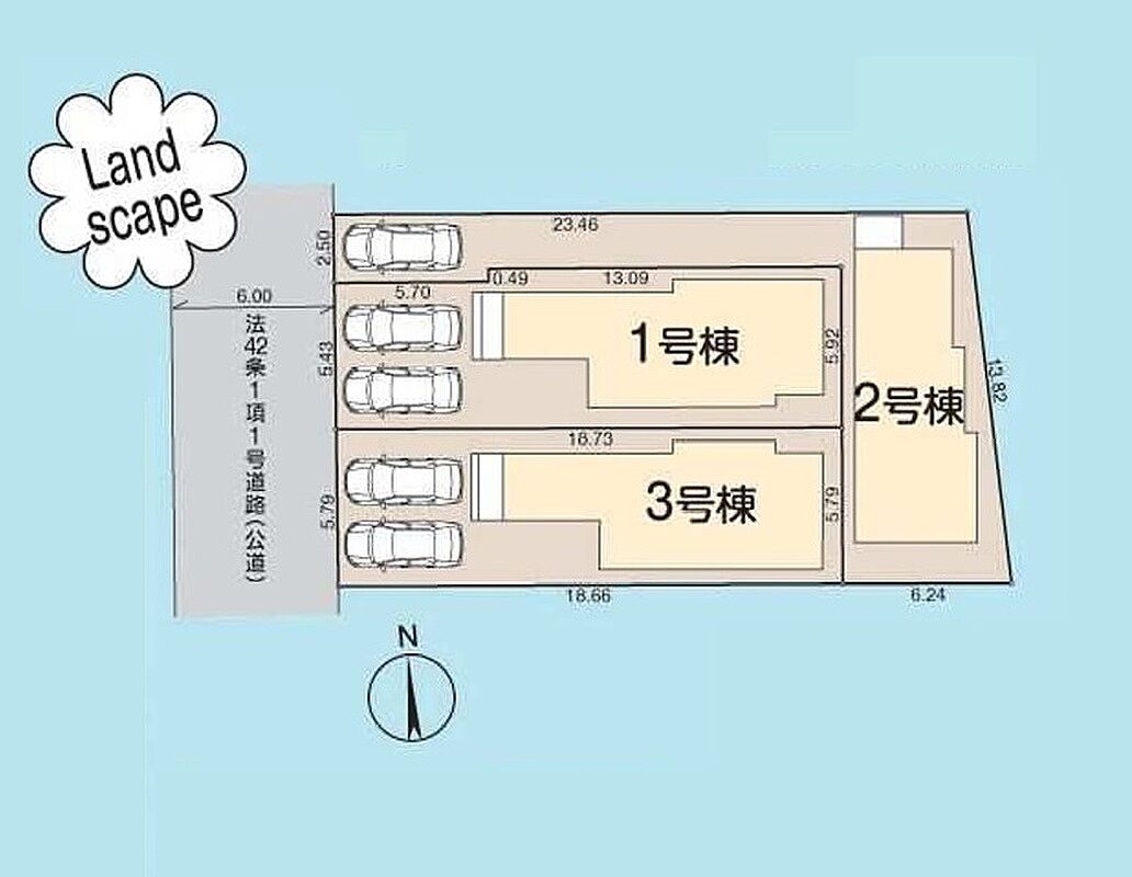 | 駐車場 | 1台 ~ 2台(1台(1戸)、2台(2戸)) | 道路の幅員 | 西側6m公道 |
