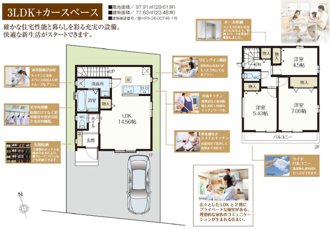 | 建物面積 | 77.63m2 | 土地面積 | 97.91m2 |