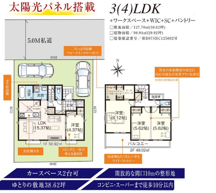 ●弊社なら仲介手数料「0円」対象物件●耐震×制震住宅!震度7までの揺れを効率よく吸収できる「Kダンパー」採用!壁倍率3.3倍!敷地面積ゆとりの38.62坪!駐車2台可能!開放的な間口10mの整形地!