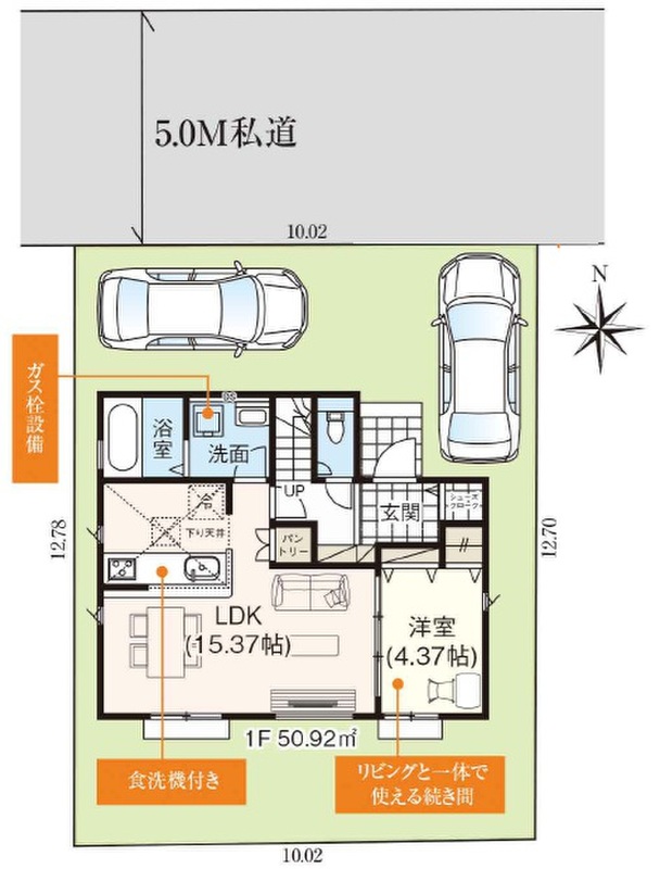 | 駐車場 | 1台 ~ 2台 | 道路の幅員 | 北側5.0m私道 |
