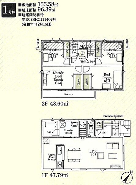 1号棟 間取り 4LDK 価格 6290万円 建物面積 96.39m2 土地面積 155.58m2 -