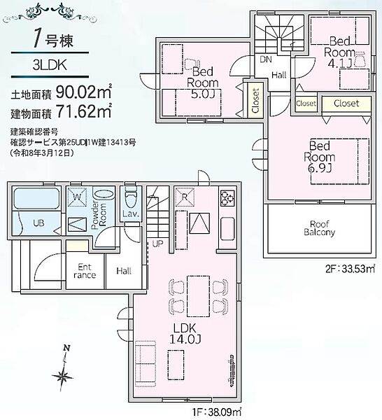 | 主たる設備の概要 | 東京電力・都市ガス・公営水道・本下水 | 建築確認番号 | 第25UDI1W建13413号 |
