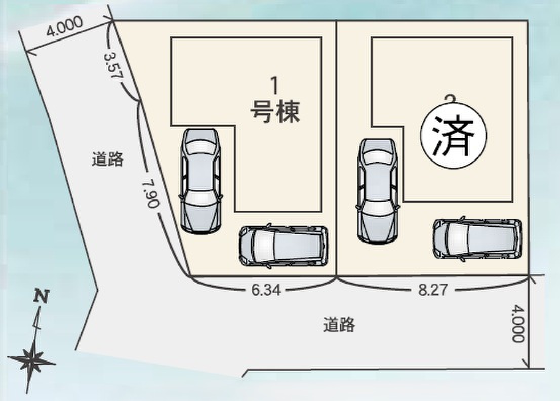 | 駐車場 | 1台 ~ 2台 | 道路の幅員 | 西側4m市道、南側4m市道、セットバック幅0.19m要 |