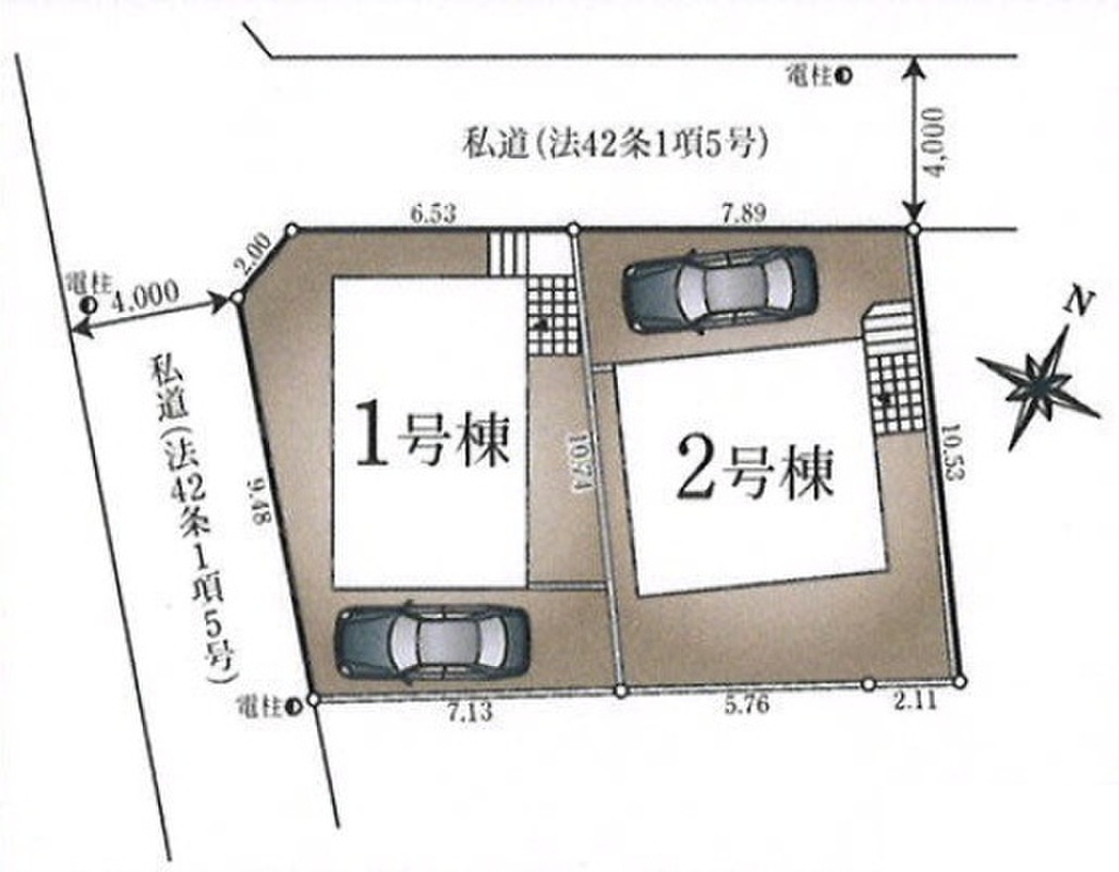 | 駐車場 | 1台 | 道路の幅員 | 北側約4.0m私道、西側約4.0m私道、私道持分有り(25.81m2×1/2ずつ) |