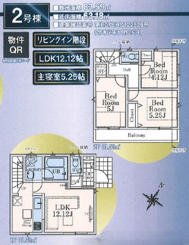 | 建物面積 | 63.18m2・64.8m2 | 土地面積 | 81.01m2・83.59m2 |
