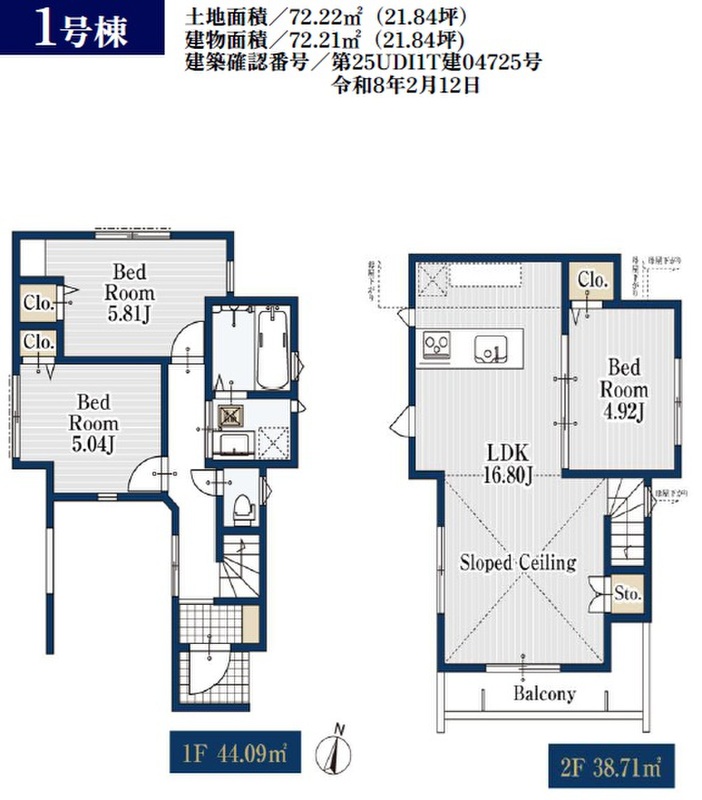 | 建物面積 | 70.99m2~74.3m2 | 土地面積 | 72.22m2~76.34m2 |