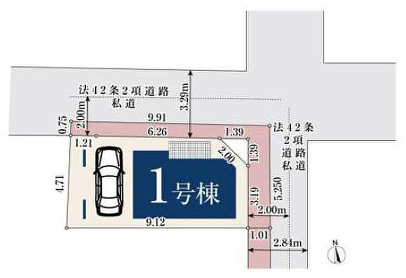 | 駐車場 | 1台 | 道路の幅員 | 東側現況約1.8m私道、北側現況約2.5m私道 |