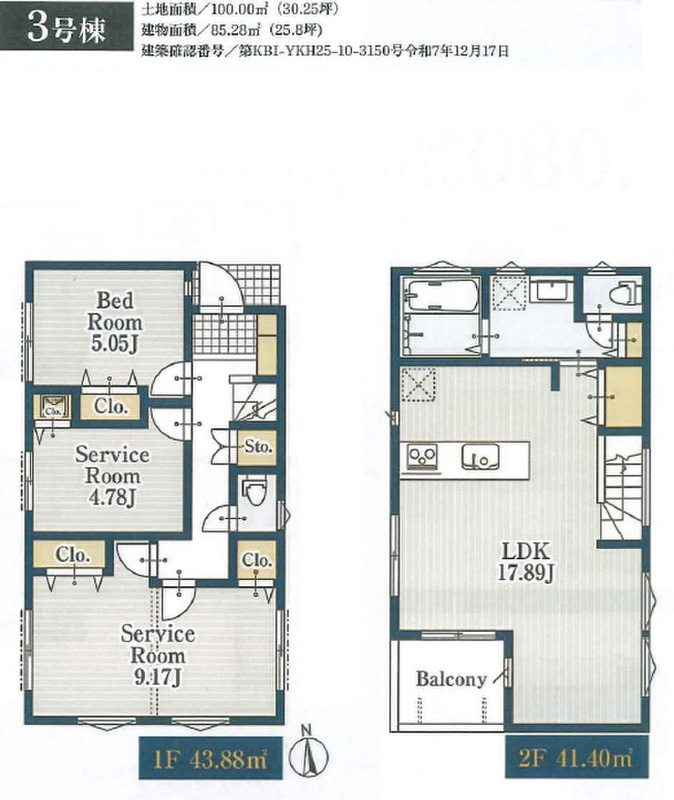 | 建物面積 | 85.28m2・90.67m2 | 土地面積 | 100.00m2・101.33m2 |