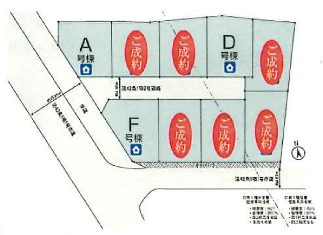 | 駐車場 | 1台 | 道路の幅員 | 西側約16.0m(歩道含む)公道、開発道路約4.5m |