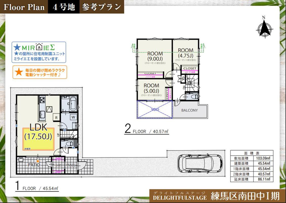 【諸費用キャンペーン対応物件】西武池袋線「富士見台」駅徒歩11分!西武新宿線「下井草」駅も徒歩約15分で利用可能です!制震ダンパー「ミライエΣ」採用物件!1・3・5号棟は駐車2台可能です!