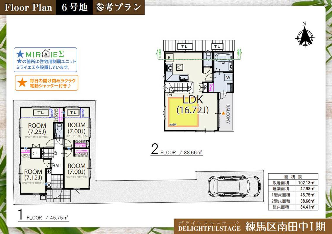 6号棟 間取り 4LDK 価格 7990万円 建物面積 84.41m2 土地面積 102.13m2 -