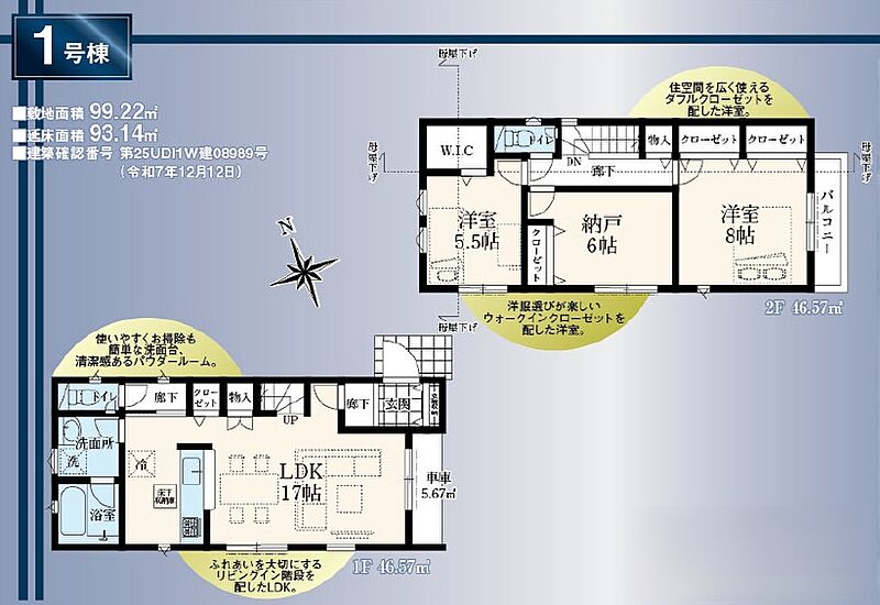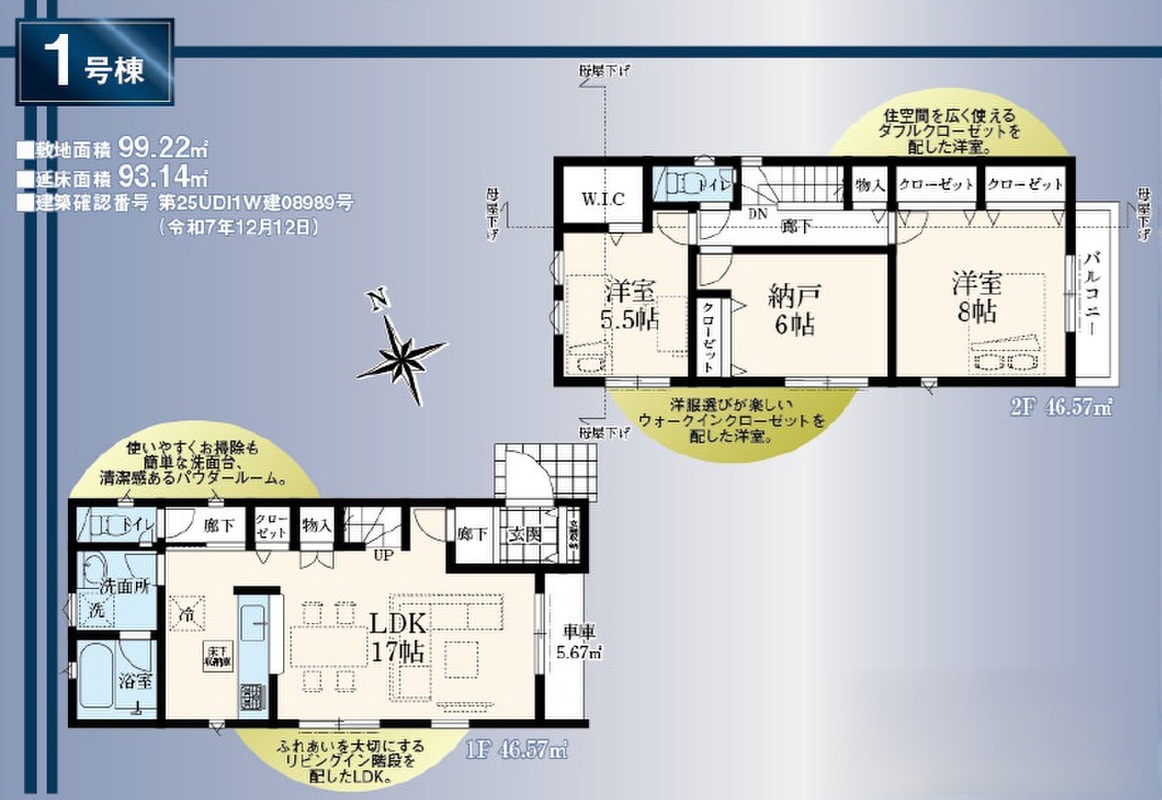 | 建物面積 | 92.34m2・93.14m2 | 土地面積 | 99.22m2 |