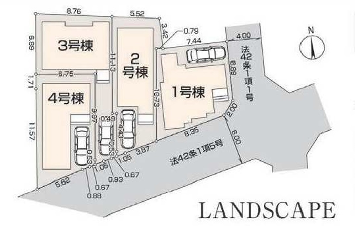 | 駐車場 | 1台 | 道路の幅員 | 東側4m公道、南側5.1m公道 |