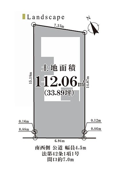 | 駐車場 | 1台 | 道路の幅員 | 南西側4.5m公道 |