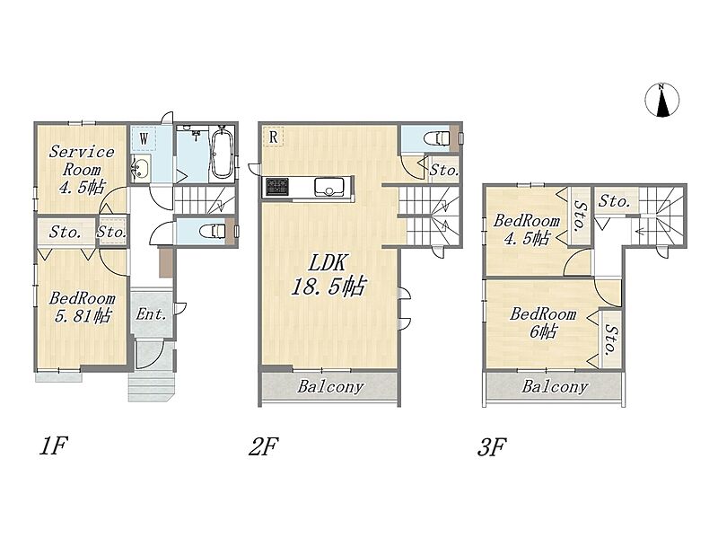 | 間取り | 2LDK+2S~3SLDK+カースペース | 建物構造 | 木造3階建 |