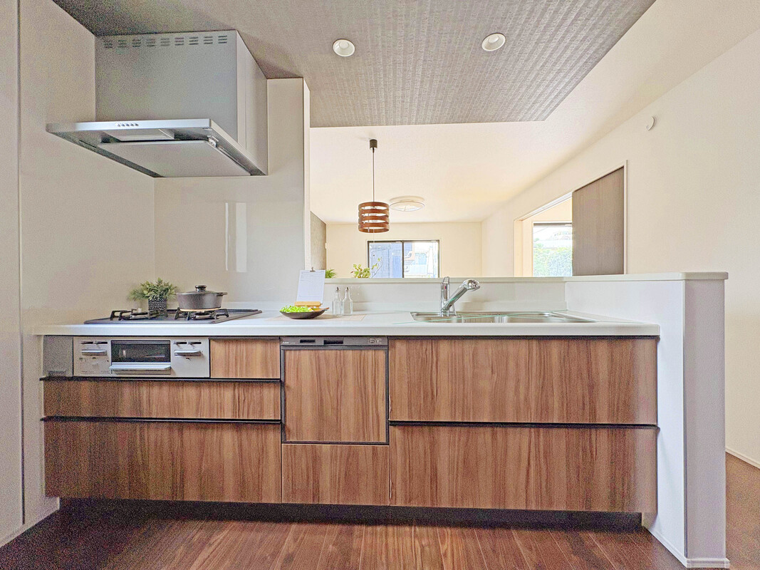 ◆ オープンキッチン仕様の邸宅!キッチンからリビングの様子が見渡せるので、小さなお子様がいても家事をしながら安心して見守れます!