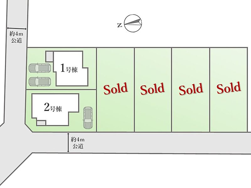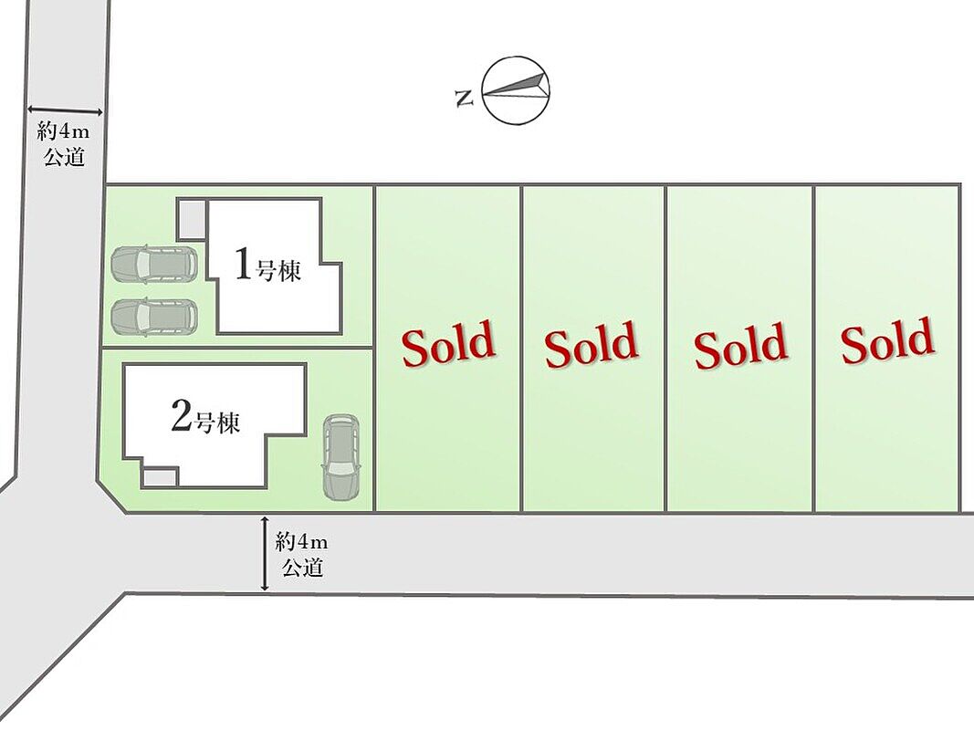 | 駐車場 | 1台 ~ 2台 | 道路の幅員 | 幅員:北側4m(公道)、西側4m(公道) |