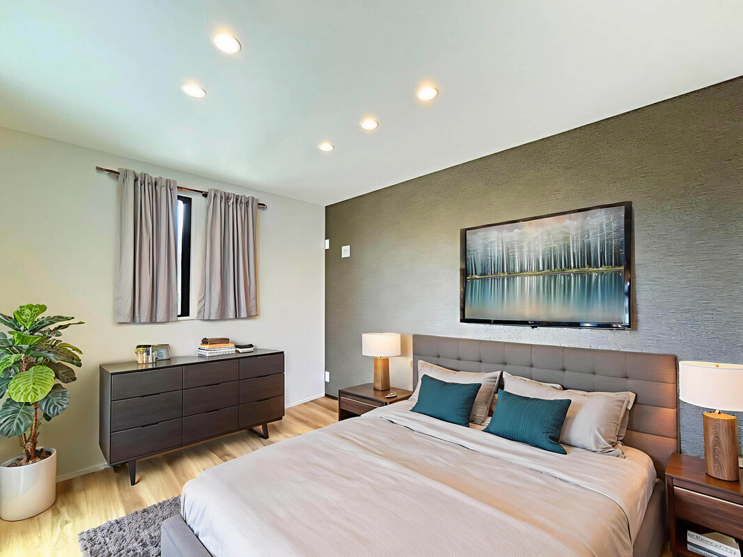 アクセントクロスが室内の雰囲気を引き締め...