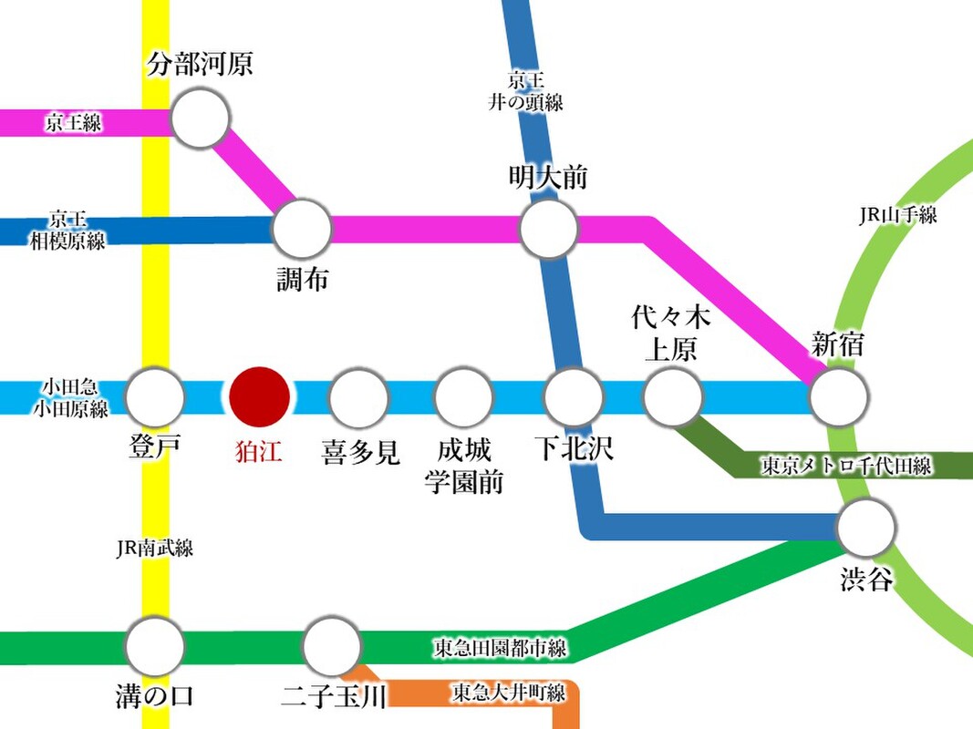 小田急小田原線「狛江」駅 徒歩20分 小田急小田原線「喜多見」駅 徒歩22分 小田急小田原線「和泉多摩川」駅 徒歩22分 |