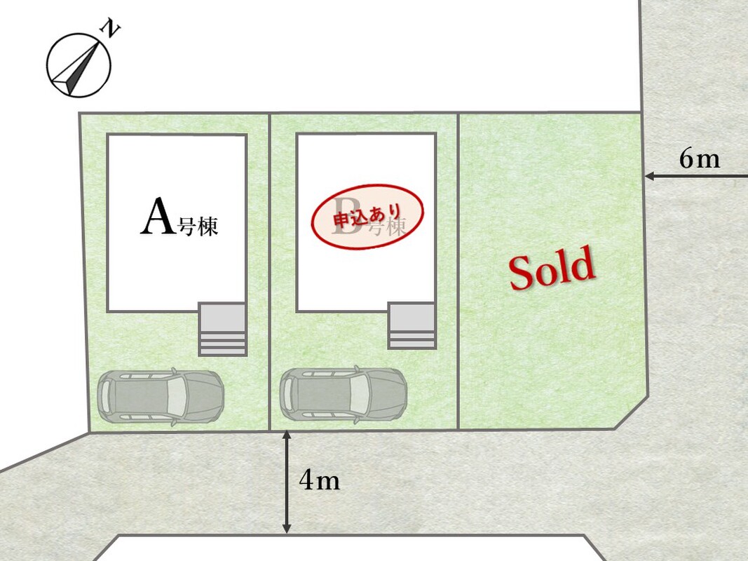 | 駐車場 | 1台 | 道路の幅員 | 南側:約4m、東側:約6m |