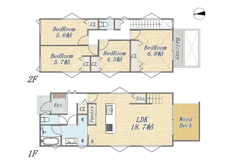 6号棟 間取り 4LDK+Pantry+ウッドデッキ 価格 7990万円 建物面積 101.02m2(30.55坪) 土地面積 106.23m2(32.13坪) -