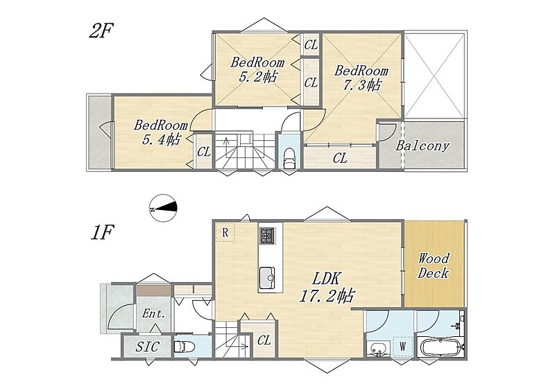 2号棟 間取り 3LDK+WIC+SIC+Pantry+ワイドバルコニー 価格 8790万円 建物面積 89.42m2(27.04坪) 土地面積 90.21m2(27.28坪) -