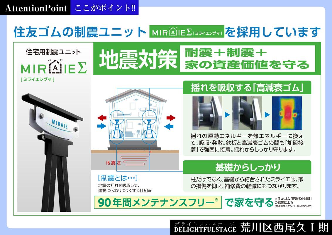 ◆ 地震の揺れを抑える制震ダンパー「ミライエΣ」が搭載している安心な住まい。