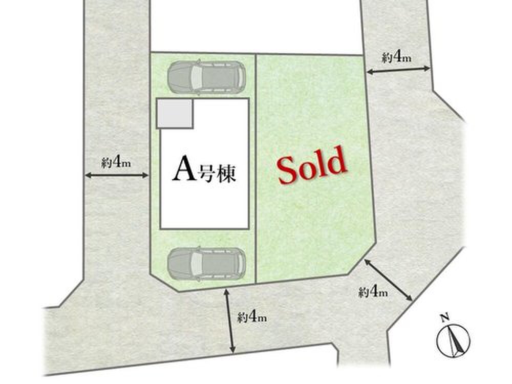 | 駐車場 | 1台 ~ 2台 | 道路の幅員 | 南西側:4m、南東側:4m、北西側:4m |