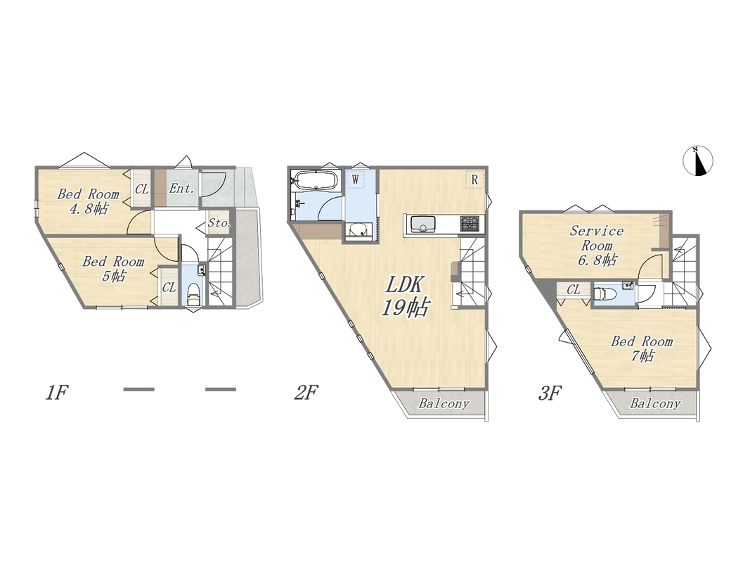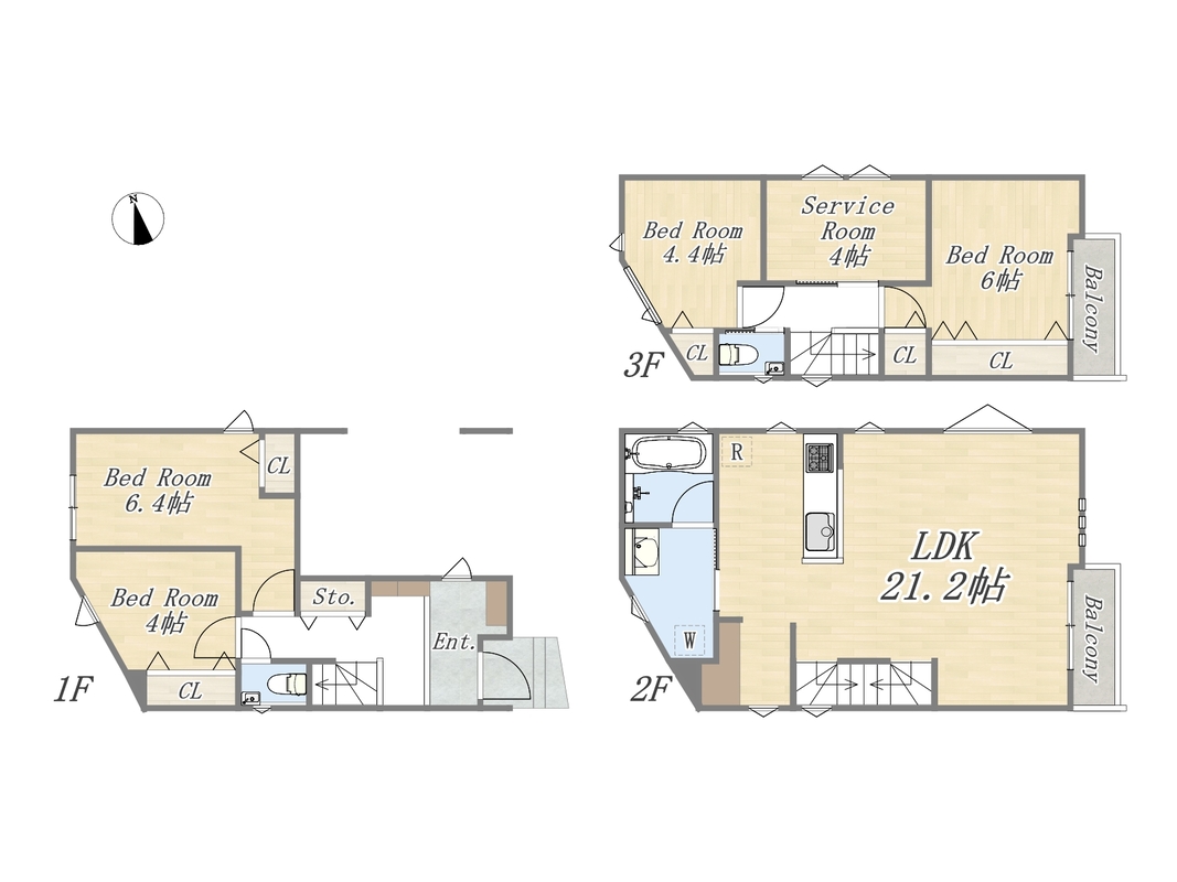 4~5部屋の三階建てプランで家族全員が自分だけのプライベートスペースを持つことが叶います!