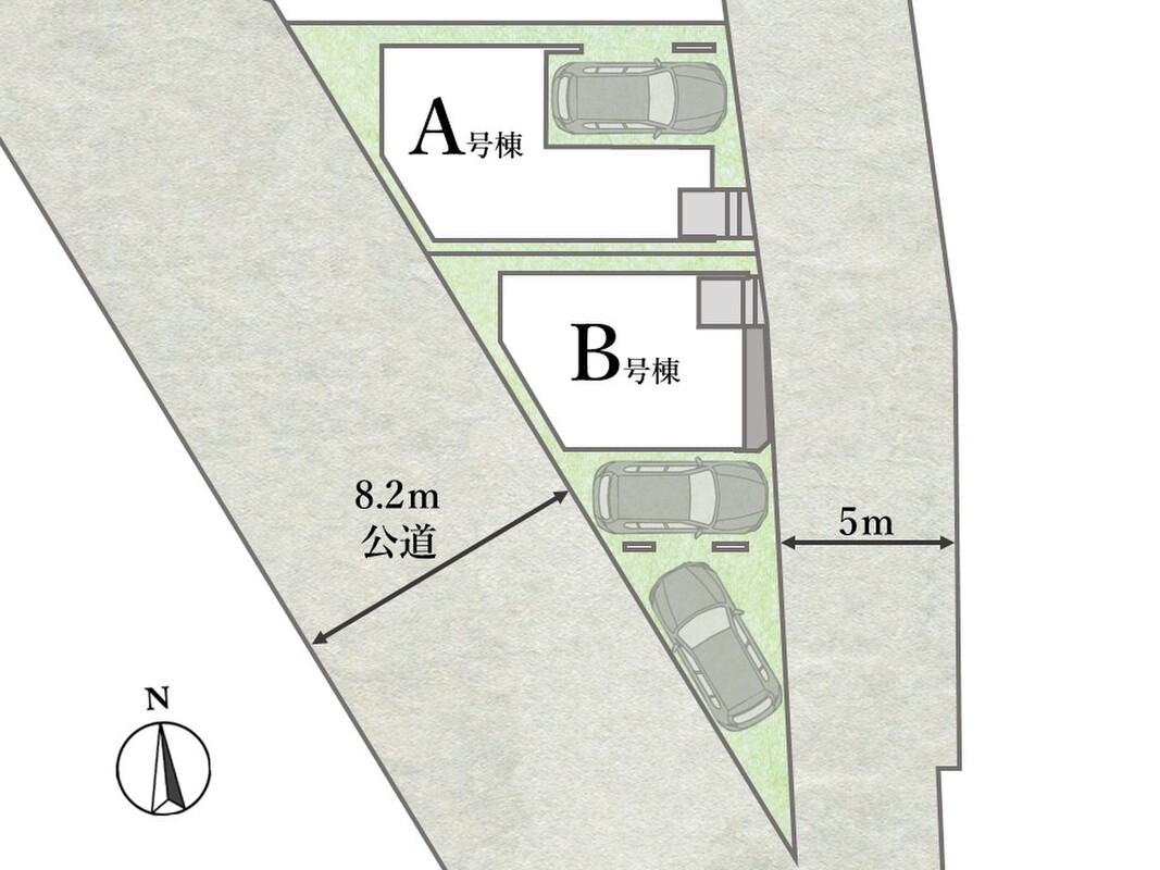 | 駐車場 | 1台 | 道路の幅員 | 西側:8.2m(公道)、東側:5m |