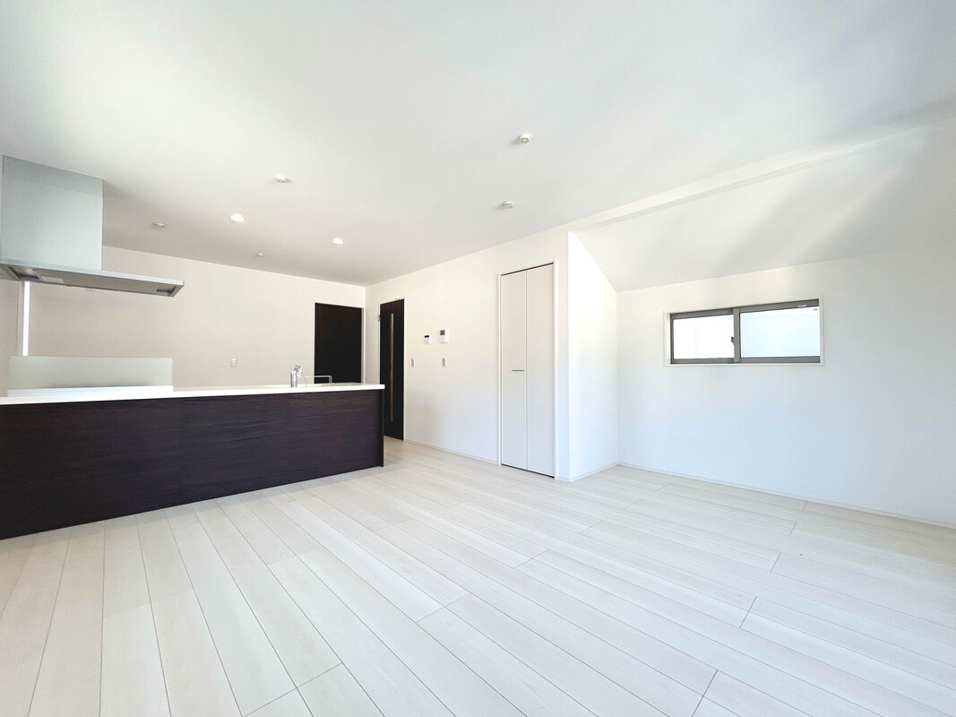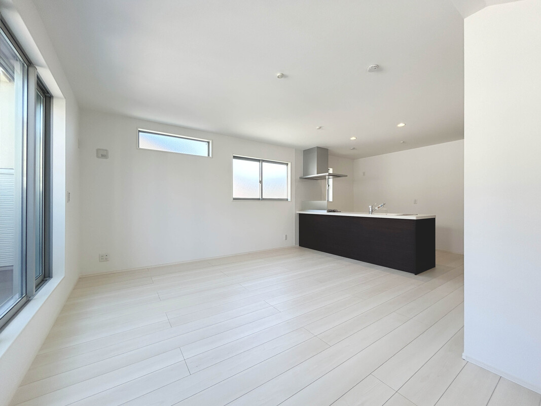 【見学予約受付中】リビングは18.14帖と広く3面採光で開放感抜群、人目を気にせずくつろげる空間!カウンターキッチンとリビング階段設計で家族間の絆がより深まりやすい設計となっています。
