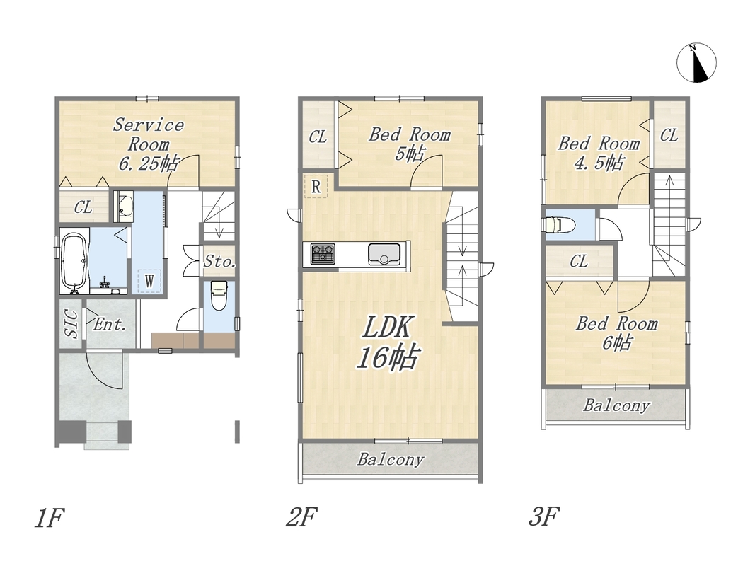 | 間取り | 2LDK+2S~3SLDK+ビルトインガレージ | 建物構造 | 木造3階建 |