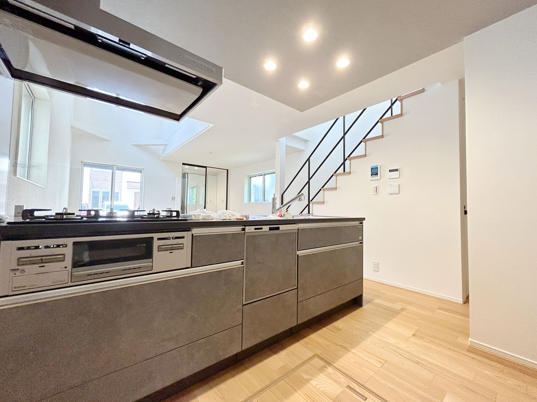 ◆ コミュニケーションが取りやすいカウンターキッチンやリビング階段が採用された家族間の絆が深まりやすいプランニング。