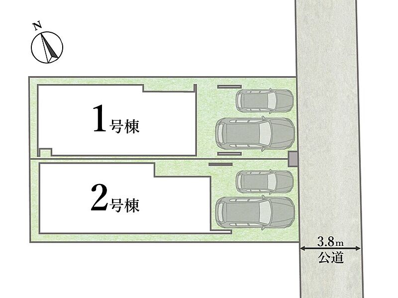 | 駐車場 | 1台 ~ 2台 | 道路の幅員 | 東側:3.8m(公道) |