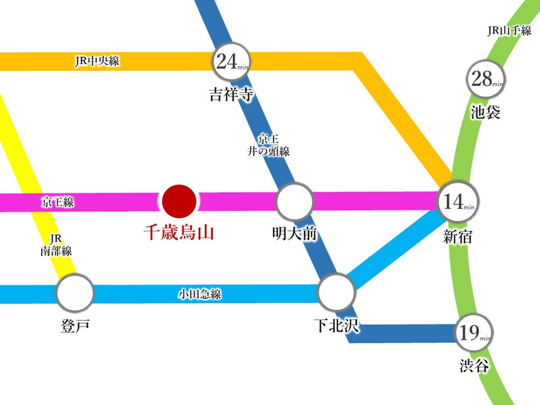 ◆ 特急停車駅の京王線「千歳烏山」駅まで徒歩10分!新宿駅までおよそ16分でアクセス可能な好立地!