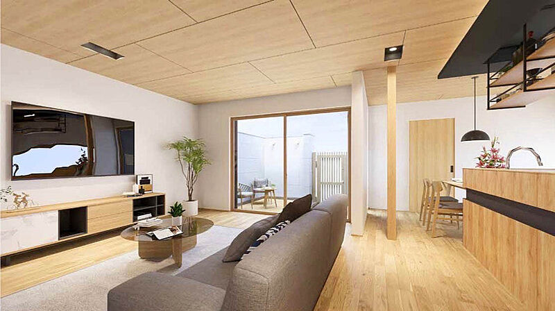 魅力1 LDK22.62帖×4部屋の広々としたファミリープラン!ウッドデッキ付きで開放的