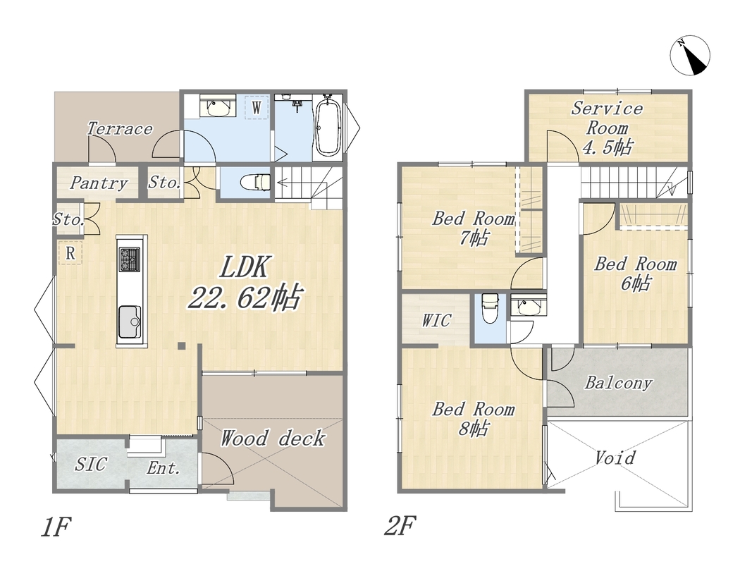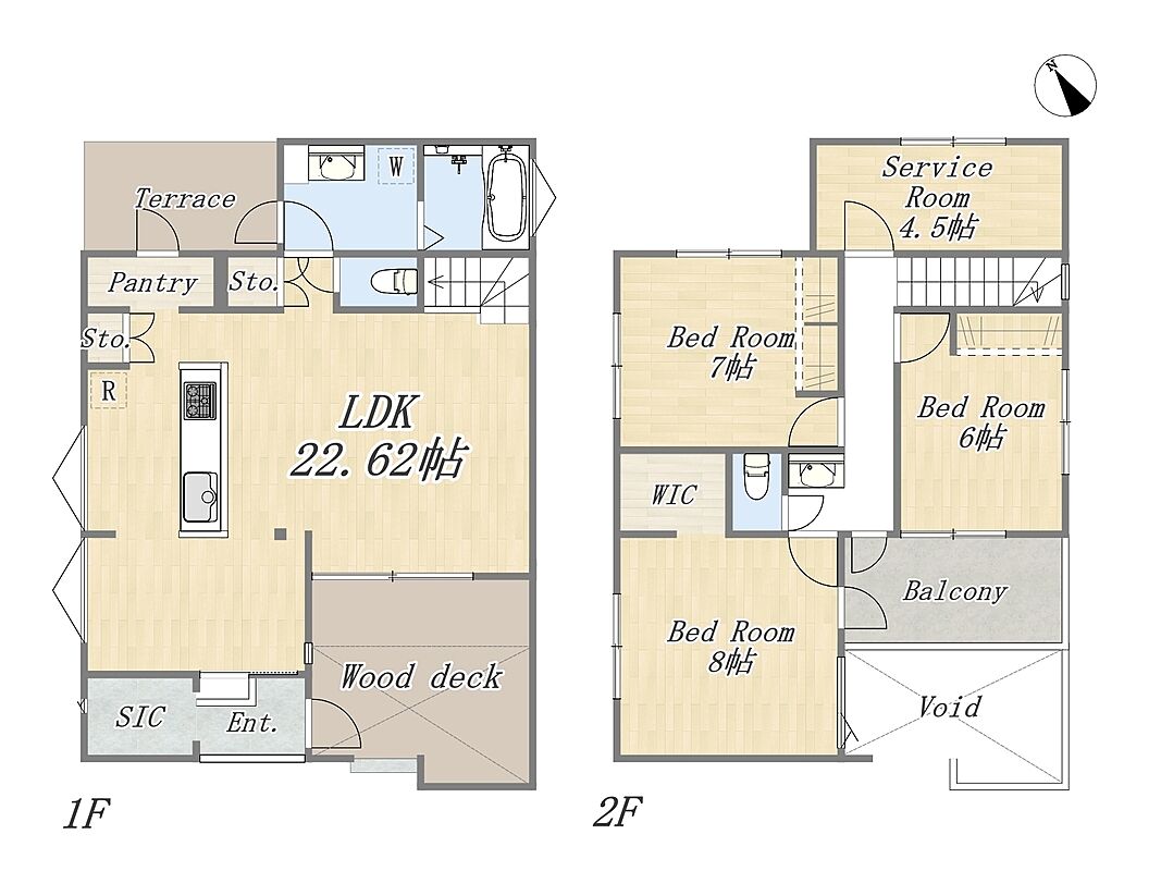 - 3SLDK+WIC+SIC+Pantry+ワイドバルコニー+ウッドデッキ+カースペース