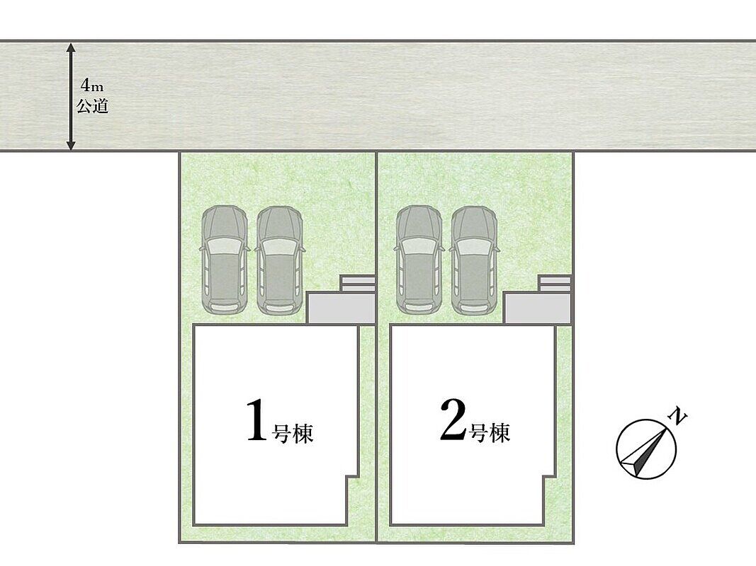 | 駐車場 | 2台 | 道路の幅員 | 北西側:約4m(公道) |