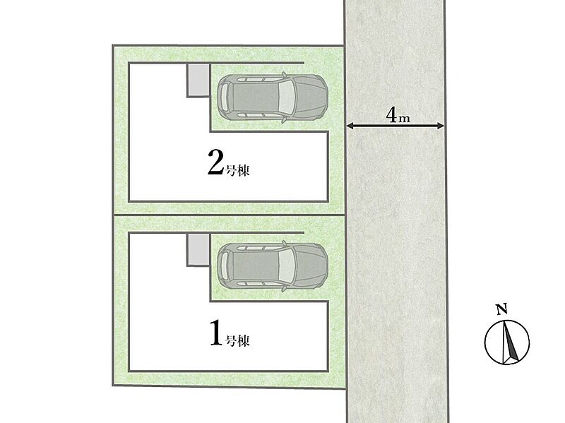 全棟LDK17.8帖以上の3階建て4部屋プラン、2階リビング仕様でプライバシーを確保。