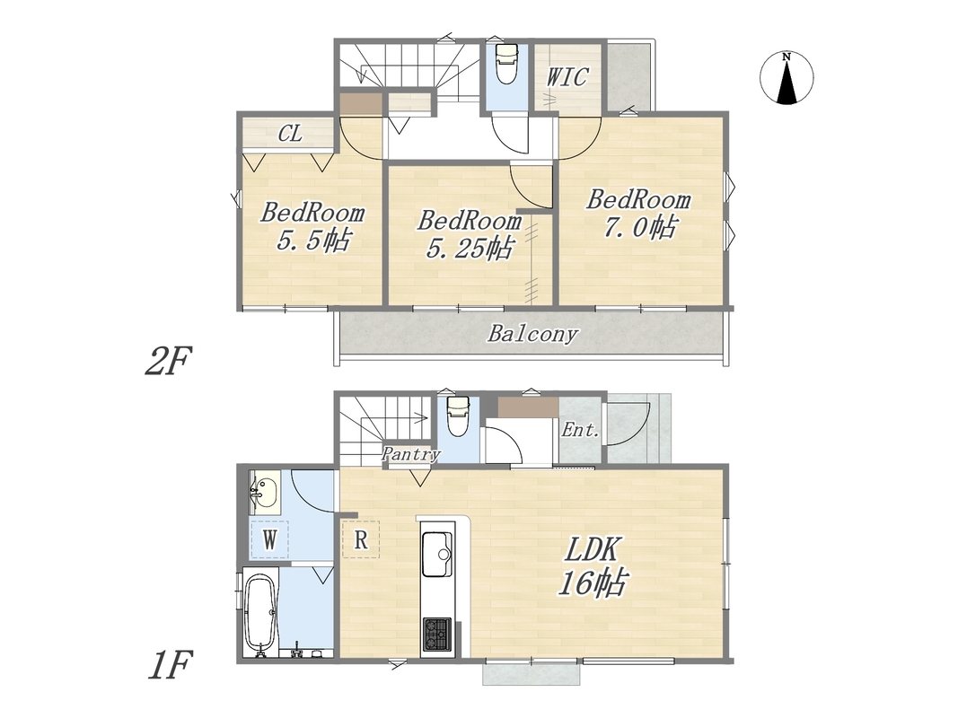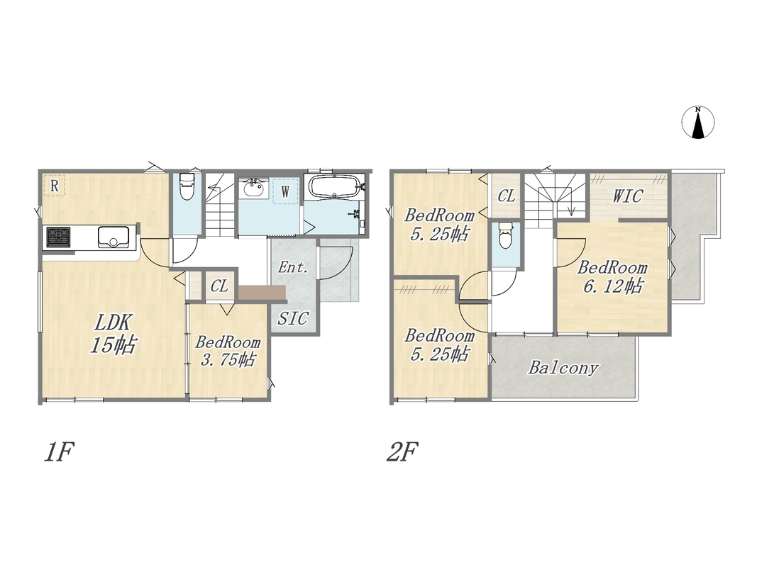 12号棟 間取り 3LDK+WIC+Pantry+カースペース2台 価格 5677万円 建物面積 79.28m2(23.98坪) 土地面積 100.04m2(30.26坪) -