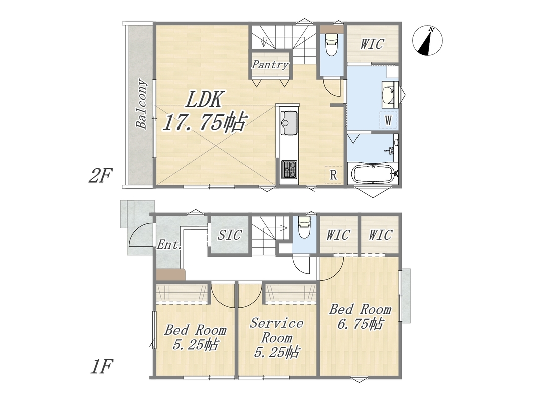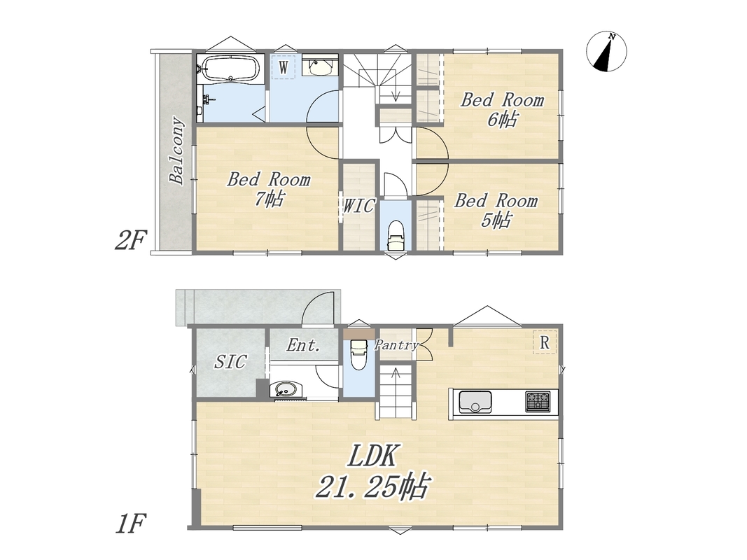 2号棟 間取り 3LDK+SIC+Pantry+カースペース2台可 価格 6690万円 建物面積 91.08m2(27.55坪) 土地面積 155.3m2(46.97坪) -