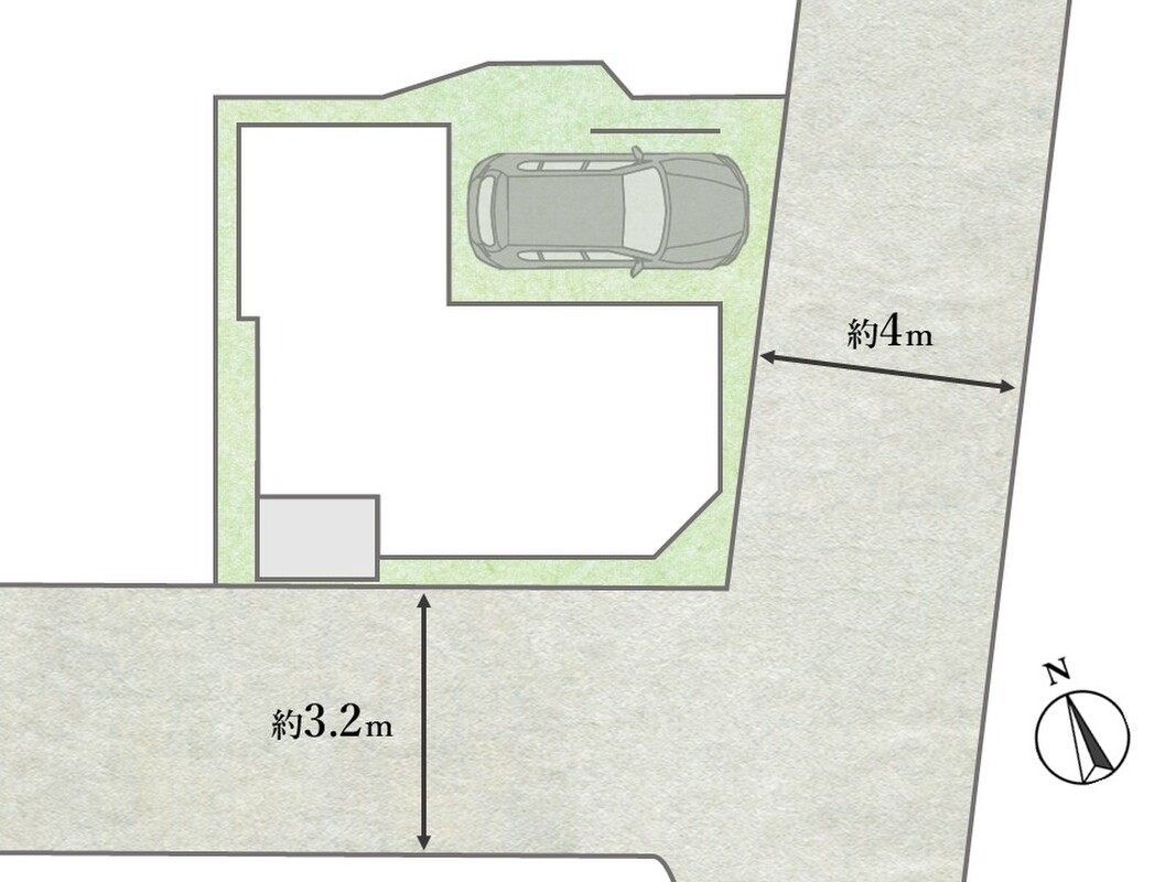 | 駐車場 | 1台 | 道路の幅員 | 西側:約4m、南側:約3.2m |