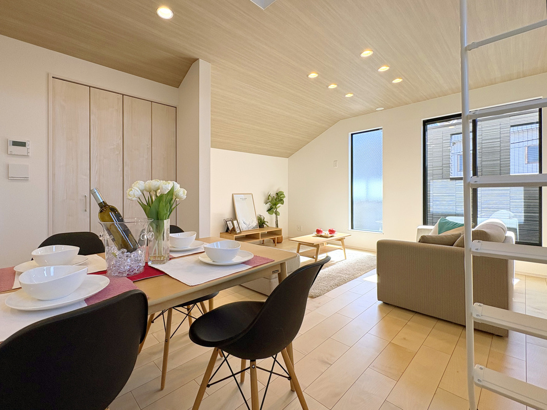 【見学予約受付中】床暖房に食洗機、太陽光発電など充実した設備仕様。リビングには開放感を演出する吹抜と様々な用途で利用可能なロフト付きのプラン。耐震等級3を取得した高品質な長期優良住宅