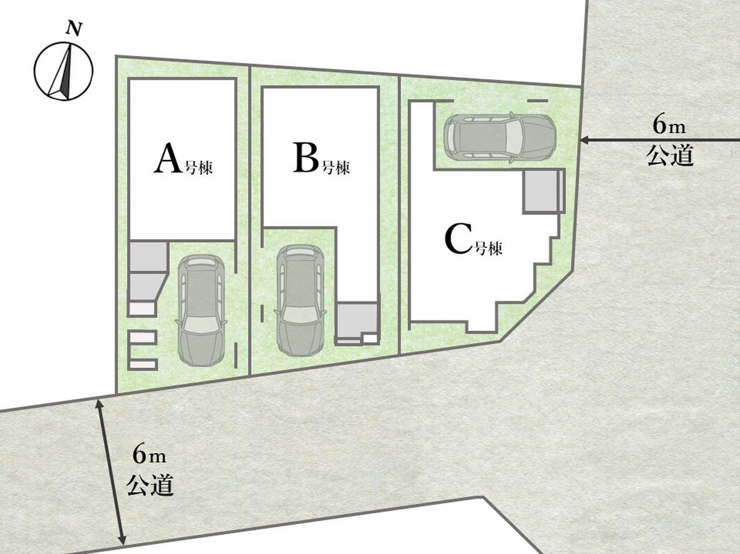 | 駐車場 | 1台 | 道路の幅員 | 南側:約6m(公道)、東側:約6m(公道) |