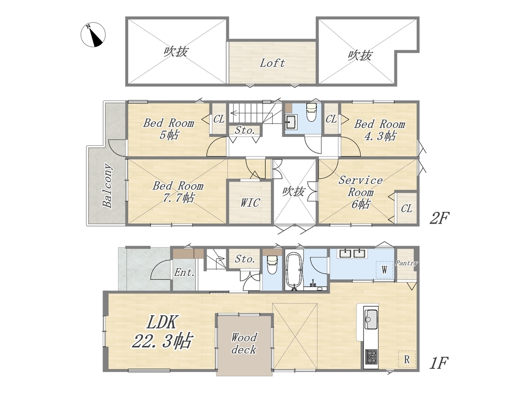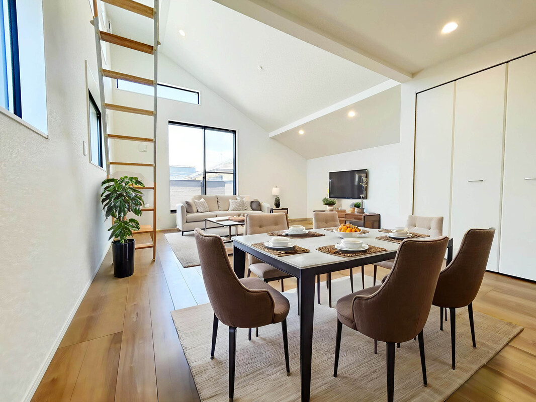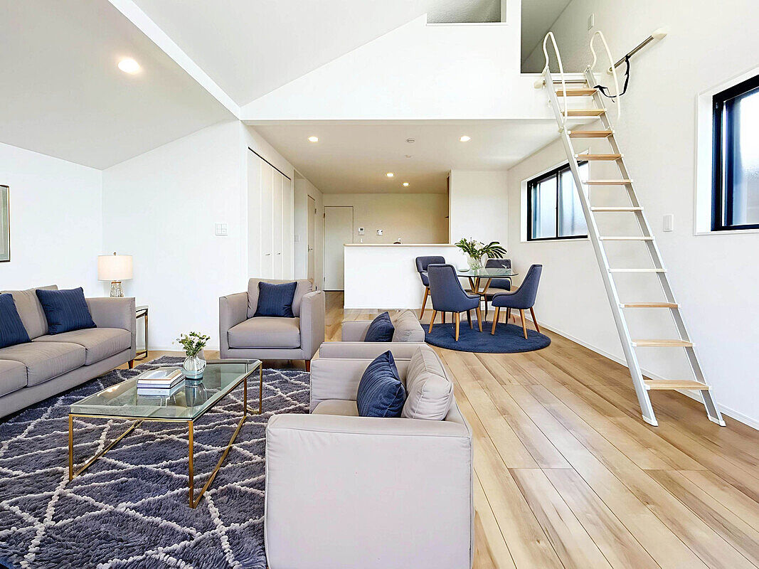 LDK21帖超でオープンキッチン仕様の広々としたプランニング。家事動線が考えられた水回り集約設計!WICやロフトなど収納豊富で部屋を広くキレイに利用可能にしてくれます。