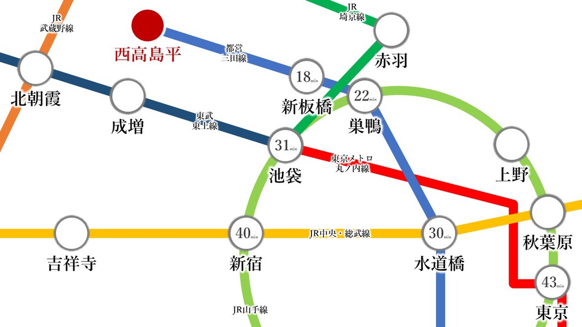 - 都営三田線「西高島平」駅 徒歩4分都営三田線「新高島平」駅 徒歩6分東武東上線「成増」駅 バス乗車15分「高島第三小裏」 徒歩2分 ・自転車約11分・車約9分