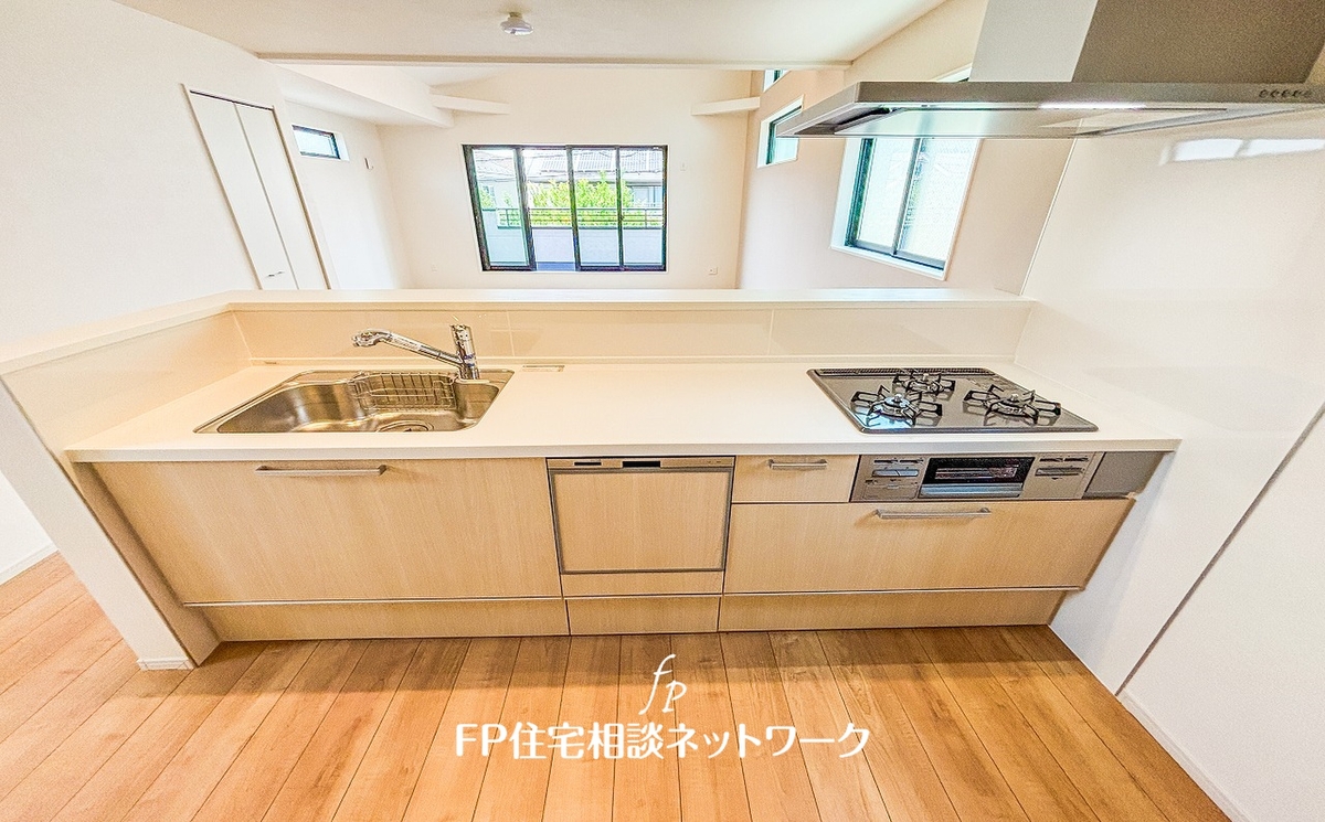 対面式のカウンターキッチンですので、出来上がったお料理をカウンターに並べてお子様が運ぶなど、お手伝いの時間も増えそうですね!ご家族と会話をしながらお料理を楽しめ一体感を感じられるキッチン仕様です。