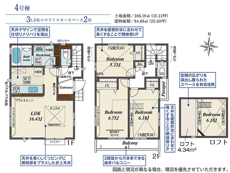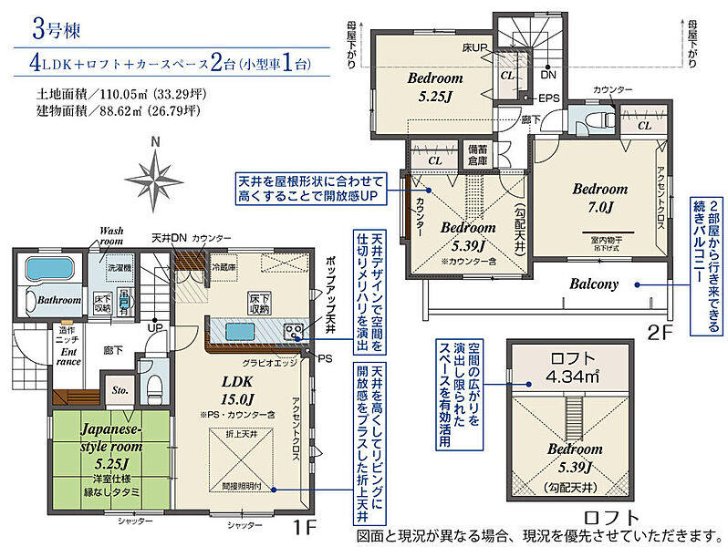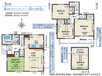 | 建物面積 | 79.49m2~90.62m2 | 土地面積 | 106.19m2~113.33m2 |