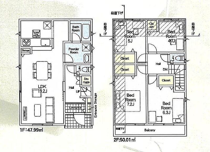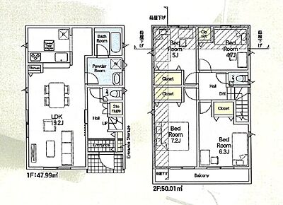 | 建物面積 | 97.20m2・98.00m2 | 土地面積 | 124.77m2・159.18m2 |