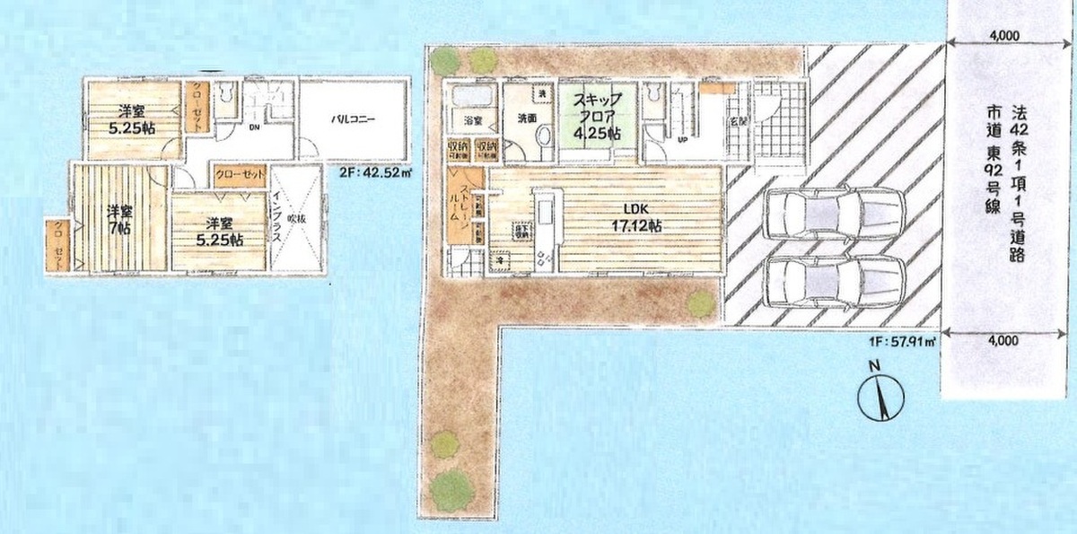 | 駐車場 | 駐車2台可(車種による) | 道路の幅員 | 東側4m |
